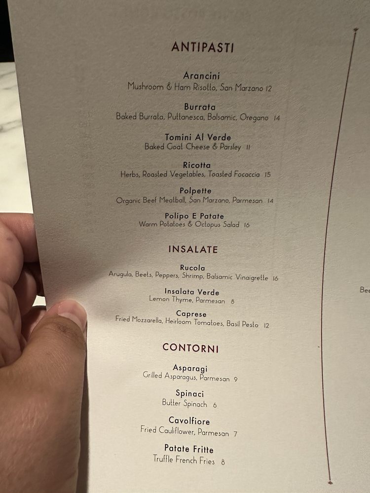 Organic Beef Meatball, San Marzano sauce, provolone cheese.